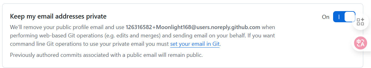💡 邮箱建议使用 GitHub 的 noreply 邮箱(格式: